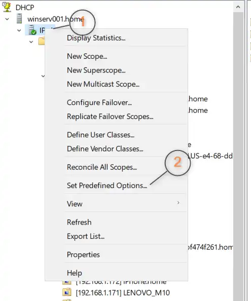 Tout d’abord, commencez par déclarer l’option au niveau du scope afin, qu’elle soit disponible lors de la création de la réservation DHCP du décodeur.